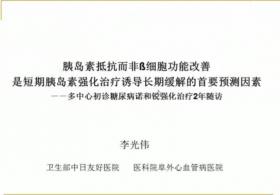 李光伟:胰岛素抵抗而非胰岛素分泌的改善是胰岛素强化治疗诱导长期缓解的首要预测因素